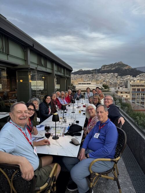 Despite a few delays, we have arrived safely in Greece! Many enjoyed touring Athens during a warm spring like day. We had our initial meal together on the rooftop terrace of our hotel.